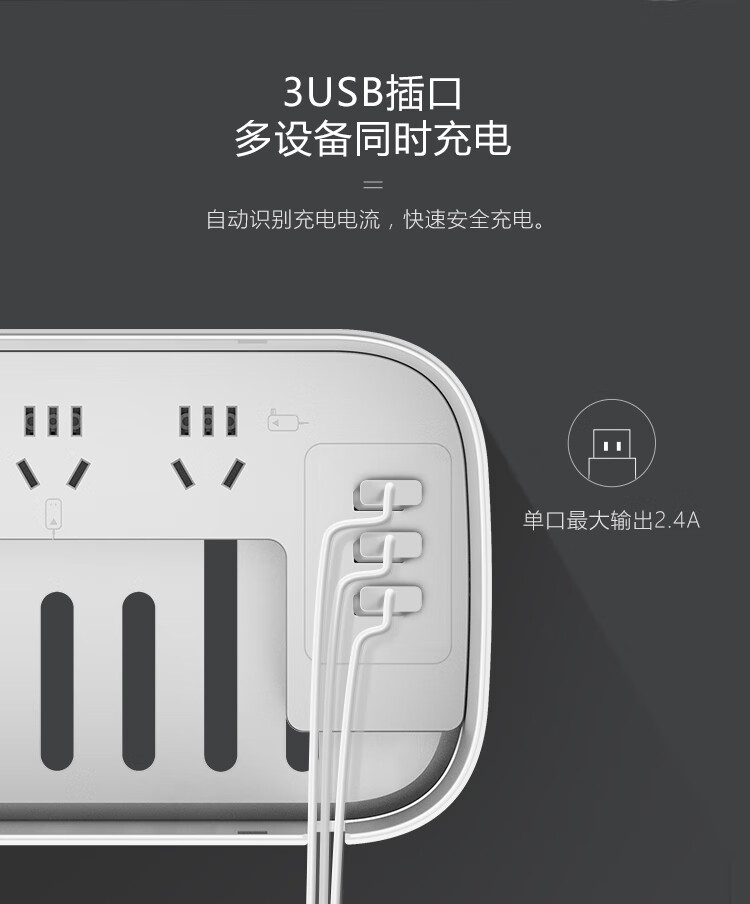 输出 :5V — 3.1A 单口 2.4A MAX