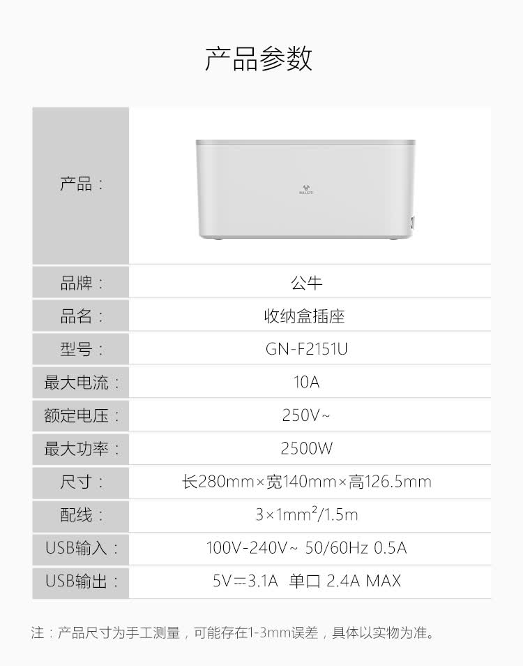 商品名称:公牛(BULL)收纳盒插座GN-F2151U