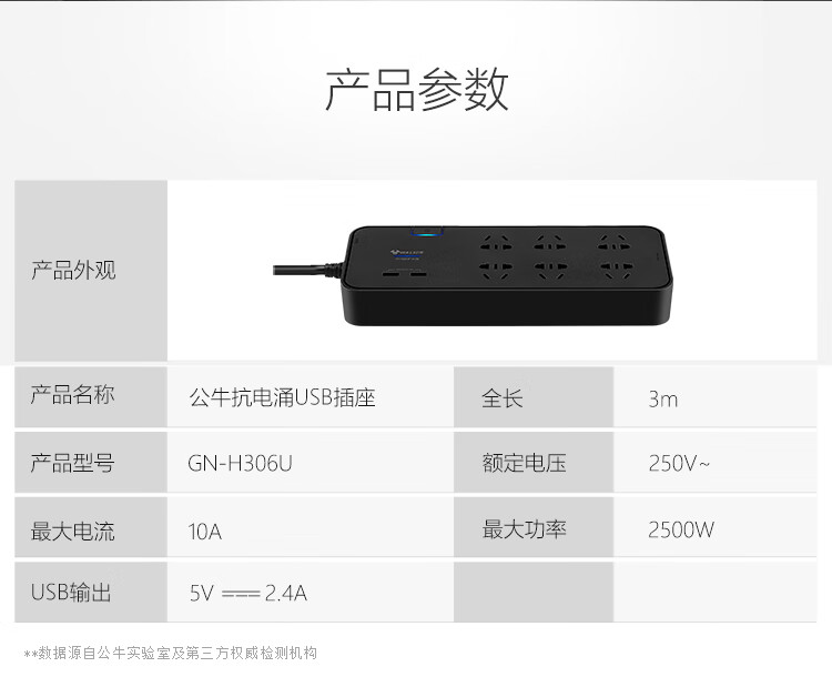 商品名称:公牛(BULL)抗电涌插座—H306U
