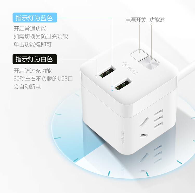 商品名称:公牛(BULL) 无线小魔方USB插座—U9B122
