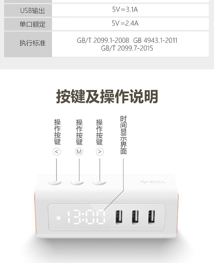 USB电流 :2.4A及以下
