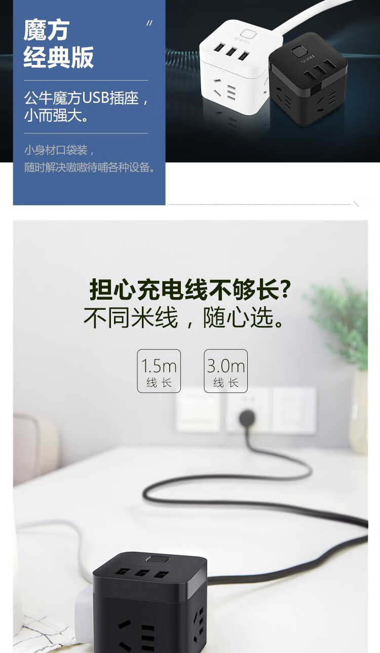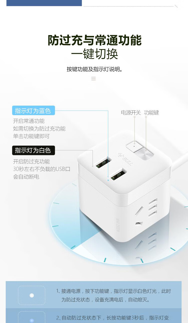 公牛(BULL) 多功能usb充电转换插头—U303WH