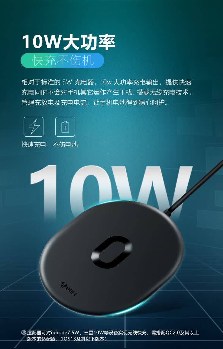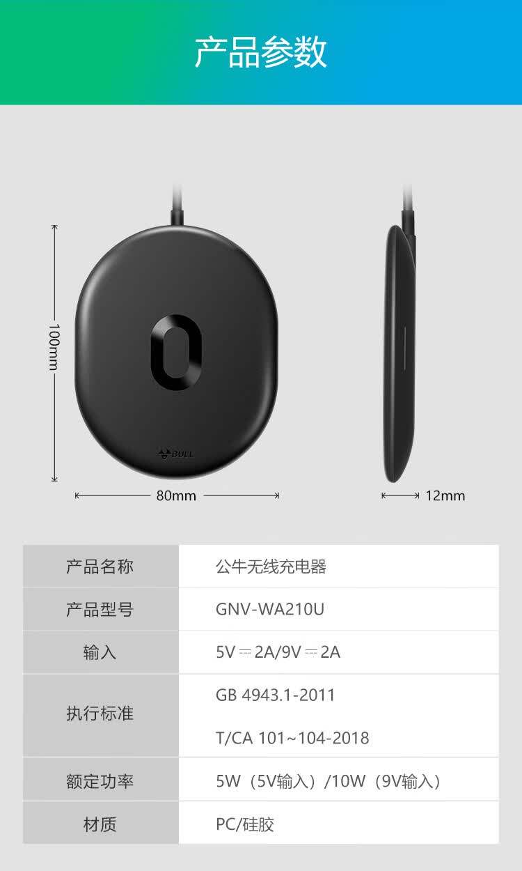 商品名称:公牛(BULL)无线充电器GNV-WA210U