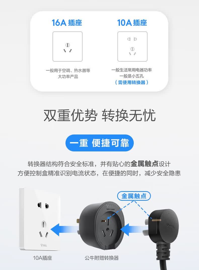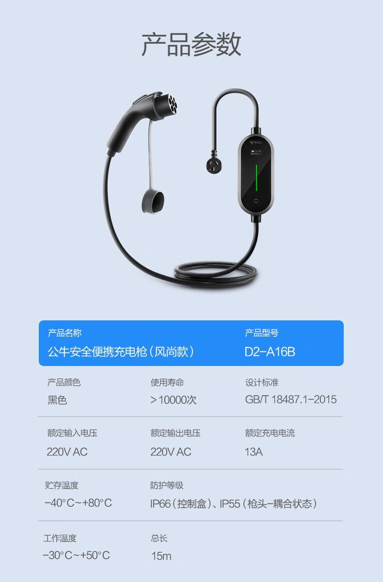 商品名称:公牛 安全充电枪D2-A16B风尚款 15m
