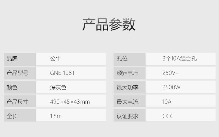商品名称:公牛(BULL)防雷PDU插座— GNE-108T