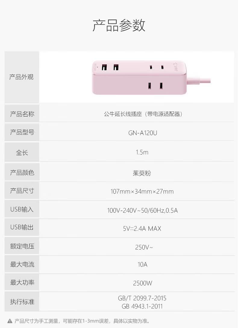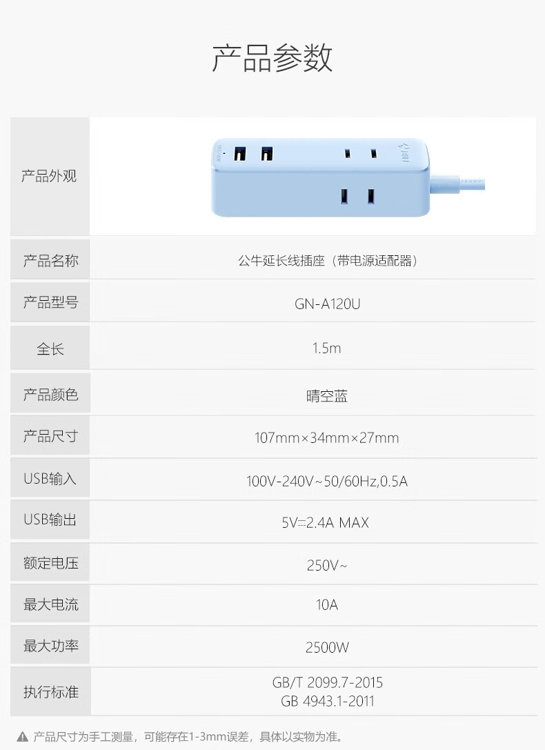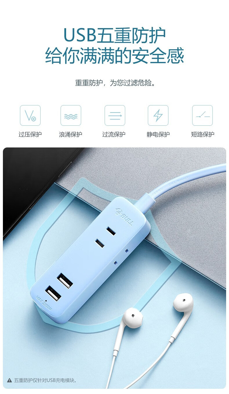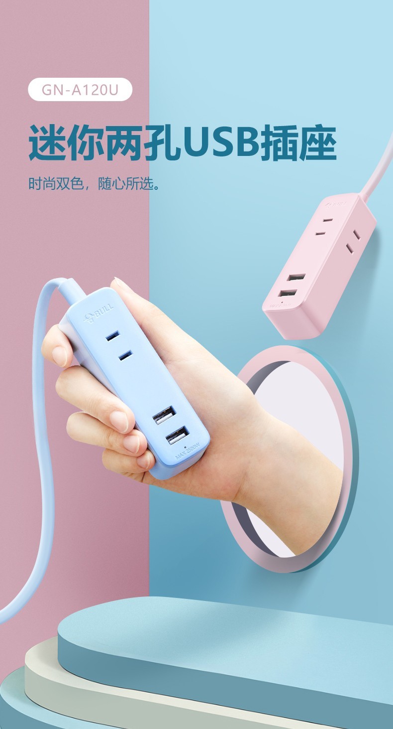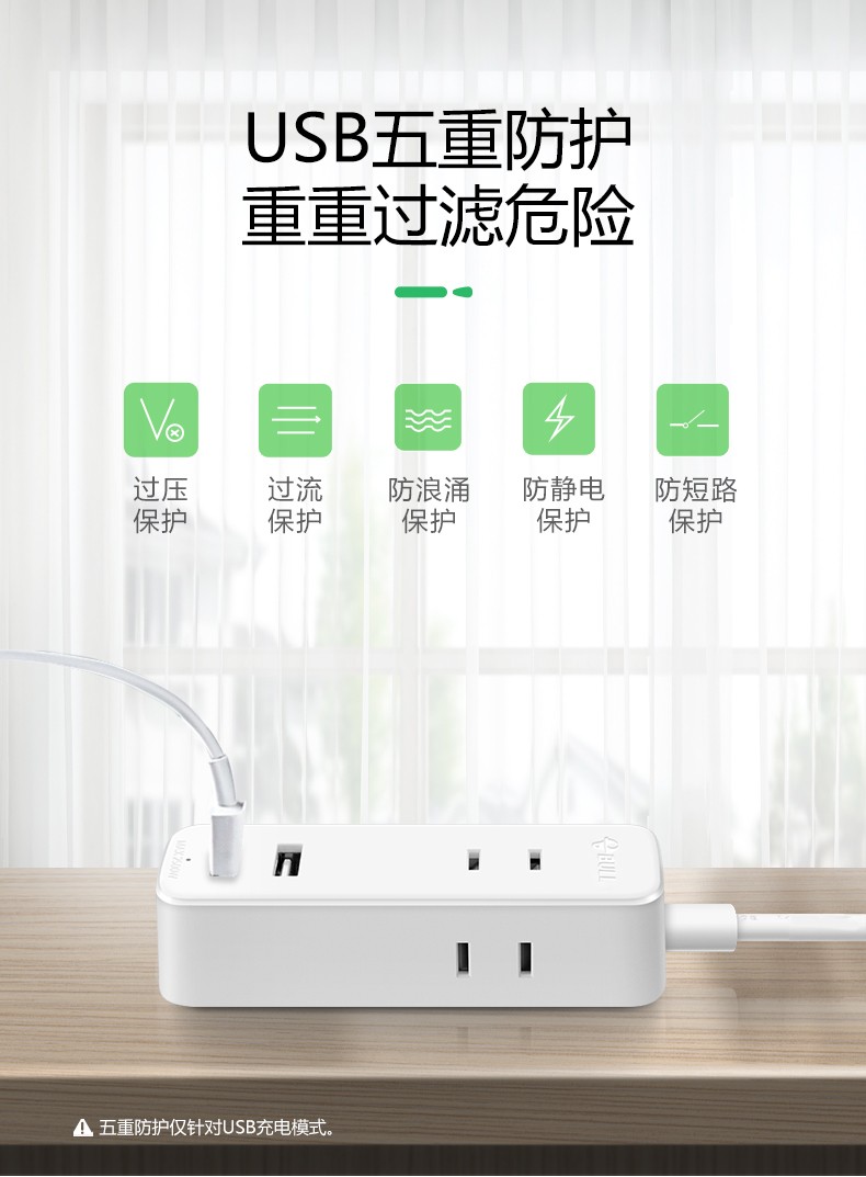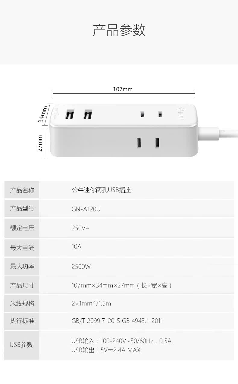 商品名称:公牛(BULL)迷你两孔USB插座 - A120U