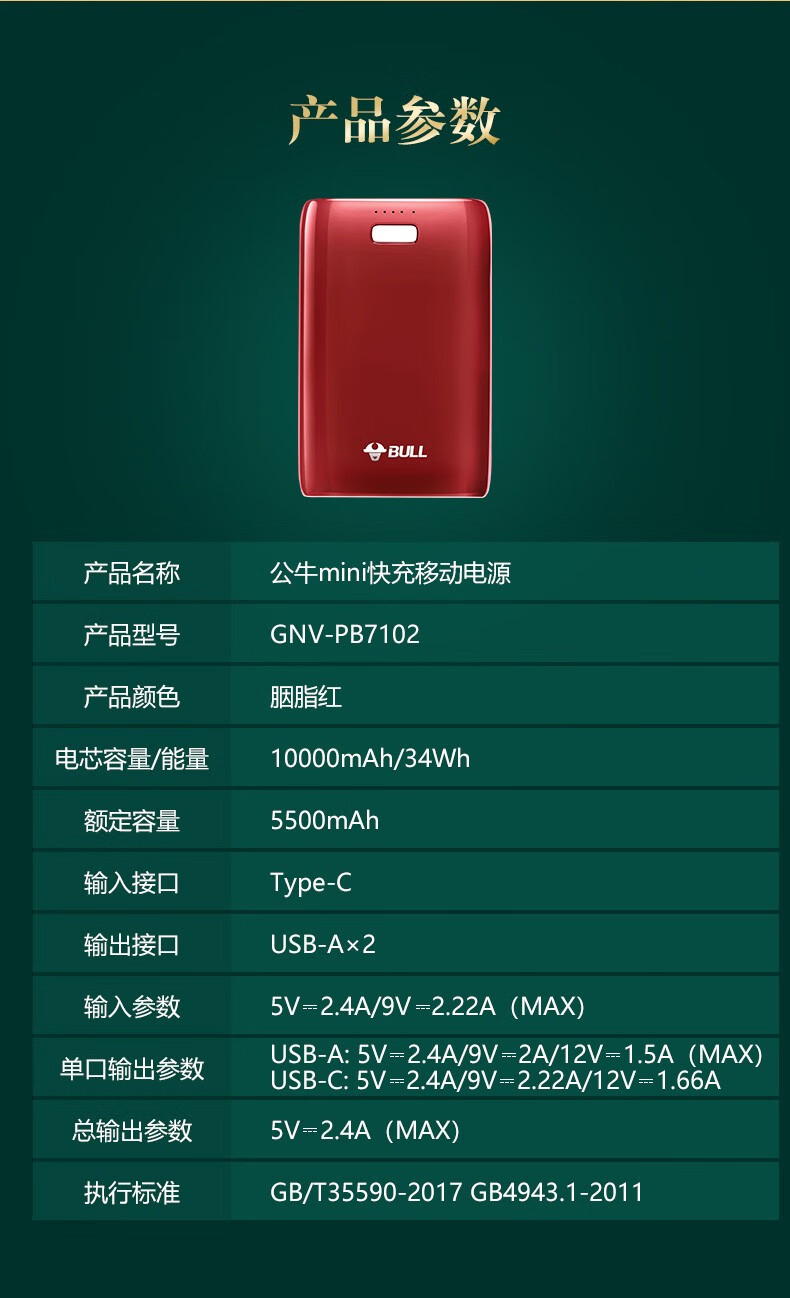 商品名称:公牛 mini快充18W移动电源 GNV-PB7102
