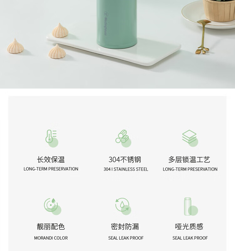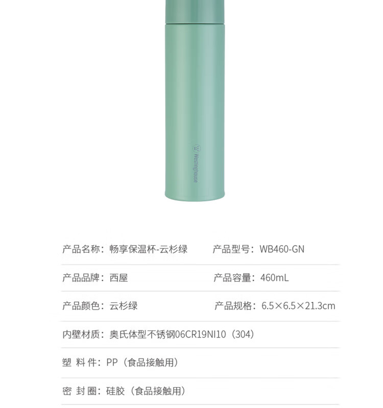 商品名称:西屋 畅享保温杯-云杉绿 WB460-GN 460mL