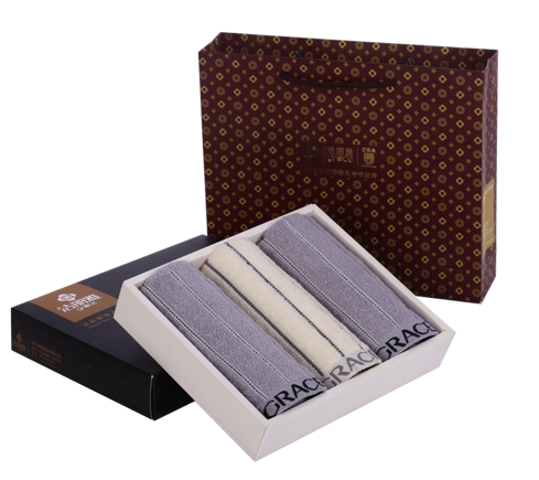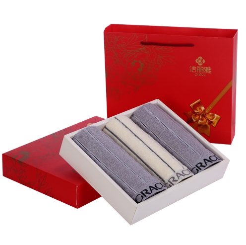 洁丽雅 纯棉强吸水面巾三条装商务喜庆礼盒 W0158x3 72X34