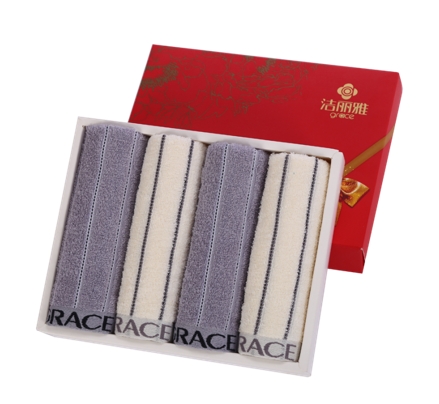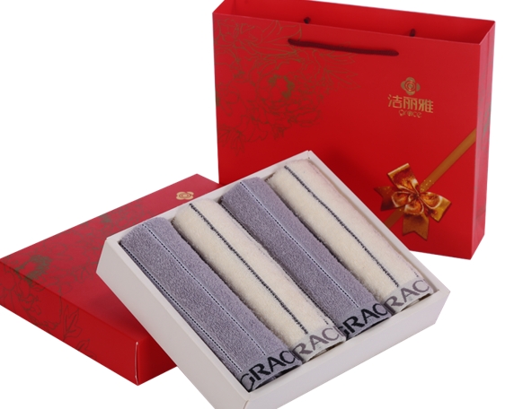 洁丽雅 纯棉强吸水面巾四条装商务喜庆礼盒 W0158x4 72X34