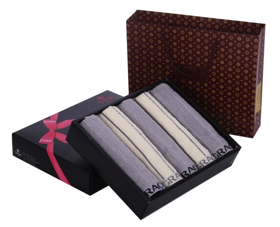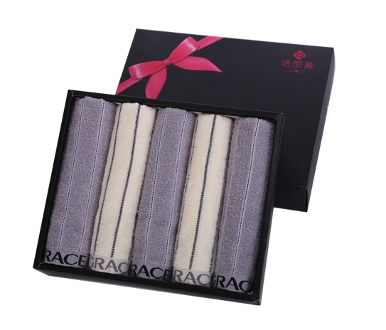 洁丽雅 纯棉强吸水面巾五条装蝴蝶结礼盒 W0158x5 72X34