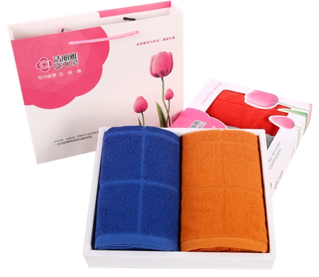 洁丽雅 纯棉强吸水面巾 喜庆 商务两条装礼盒 6237x2 76x34cm (下单备注盒子类型)