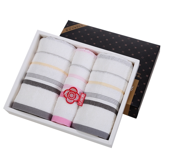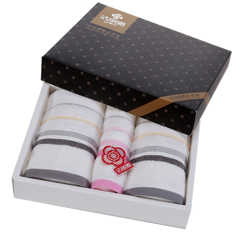 洁丽雅 纯棉强吸水舒适三条装商务/喜庆礼盒 6410*2-6409*1 72*34-34*34(下单备注礼盒)