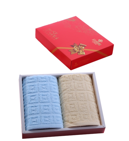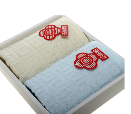 洁丽雅 纯棉强吸水舒适面巾喜庆、商务两条装礼盒 6415*2 69*33cm