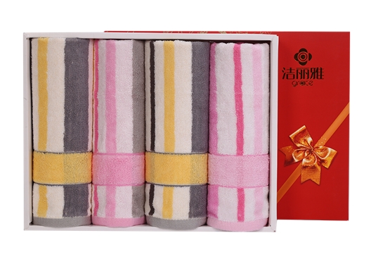 洁丽雅 纯棉喜庆/商务礼盒 四条装强吸水舒适面巾 6454*4 74*34cm (下单备注礼盒样式)