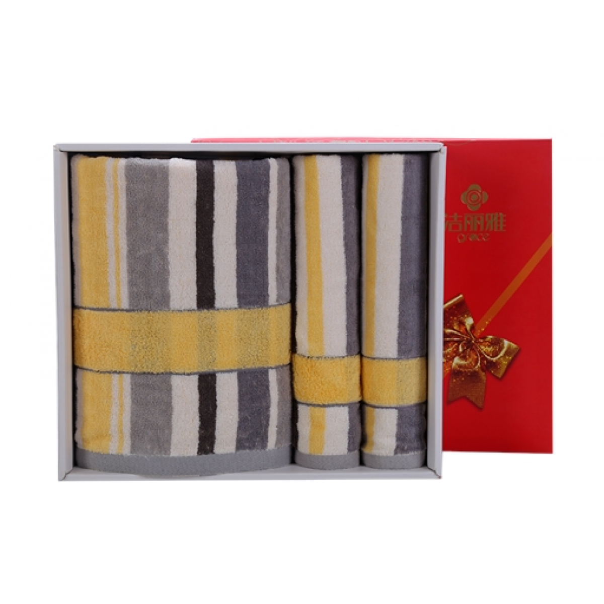 商品名称:洁丽雅 纯棉喜庆/商务礼盒 三件套装强吸水舒适面巾 6455*1-6454*2 (下单备注礼盒样式)