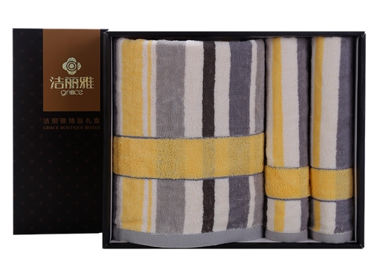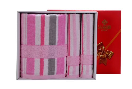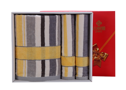洁丽雅 纯棉喜庆/商务礼盒 三件套装强吸水舒适面巾 6455*1-6454*2 (下单备注礼盒样式)