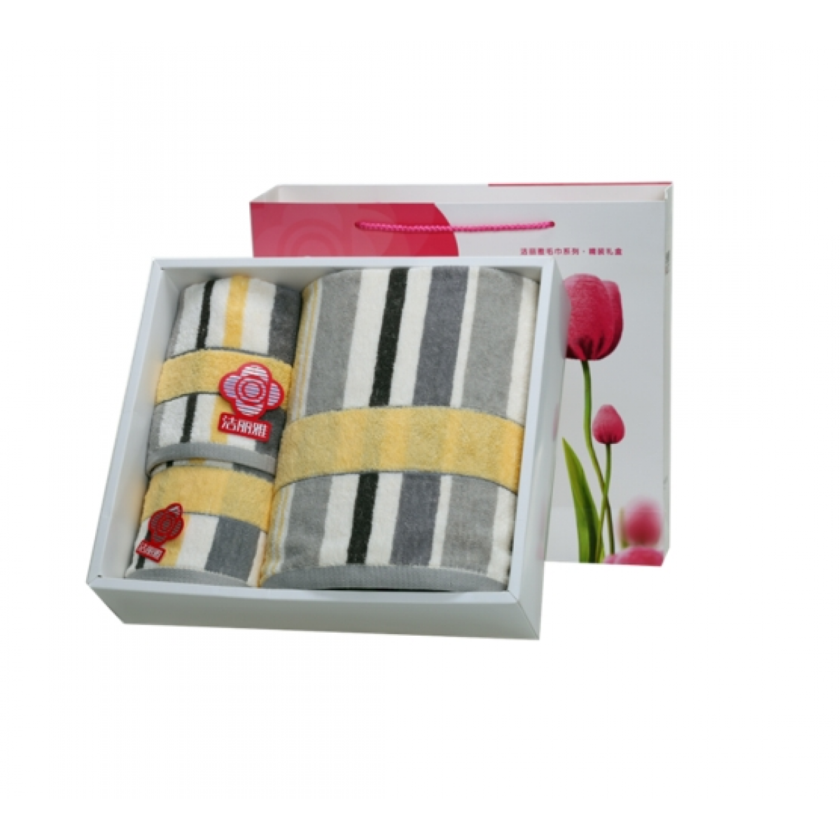 洁丽雅 纯棉郁金香礼盒 三件套强吸水舒适面巾 6453*1-6454*1-6455*1 34*34-74*34-140*70cm