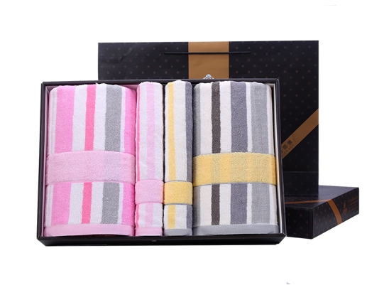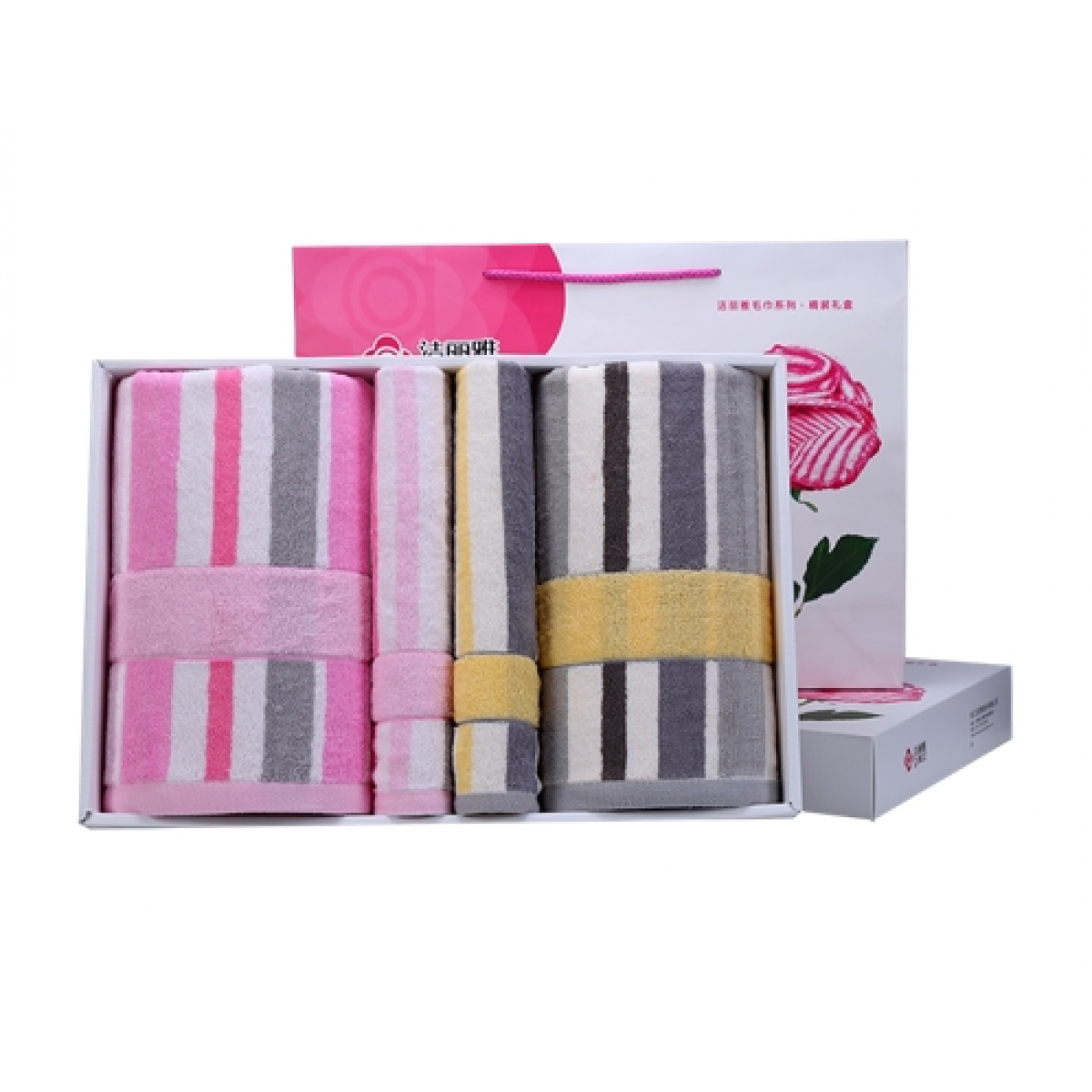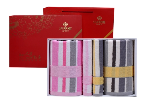 洁丽雅 纯棉喜庆/商务礼盒 四件套装强吸水舒适面巾 6455*2-6454*2(下单备注礼盒样式)