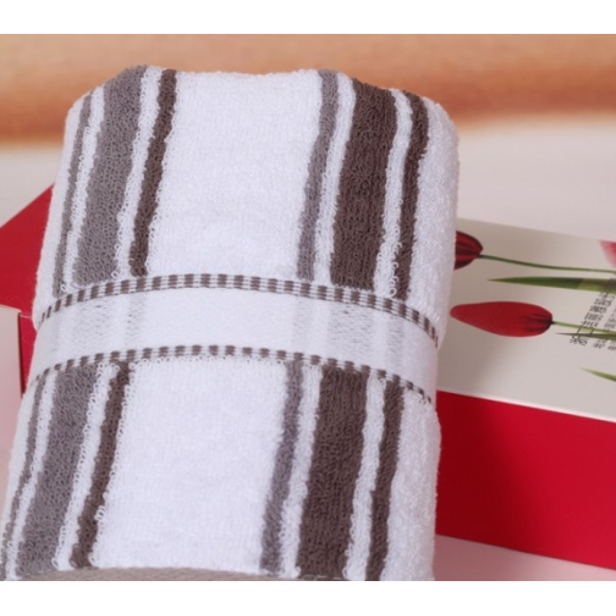 洁丽雅 郁金香礼盒一条装 多臂彩条缎档毛巾 6498*1 72*33cm