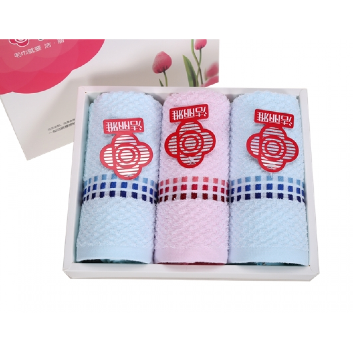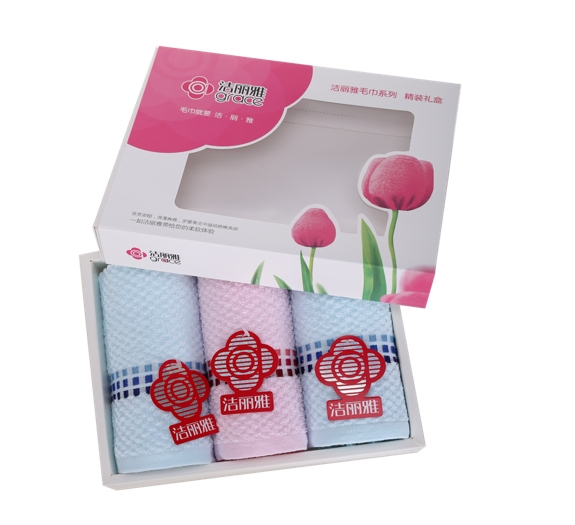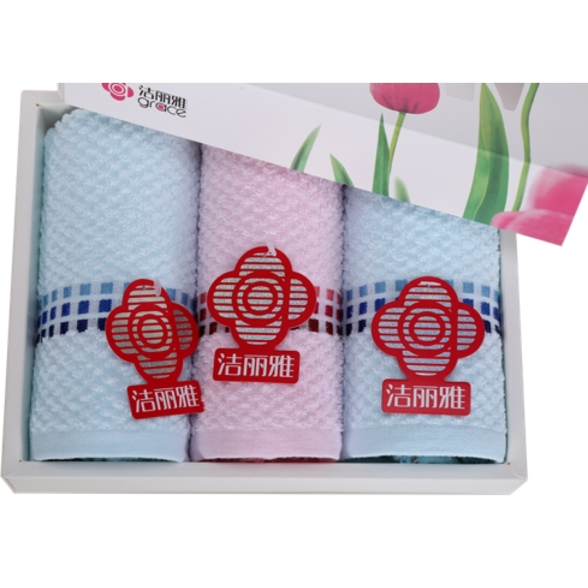 商品名称:洁丽雅 郁金香礼盒三条装 26s素色缎档毛巾 6635*3 72*34cm