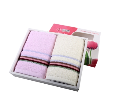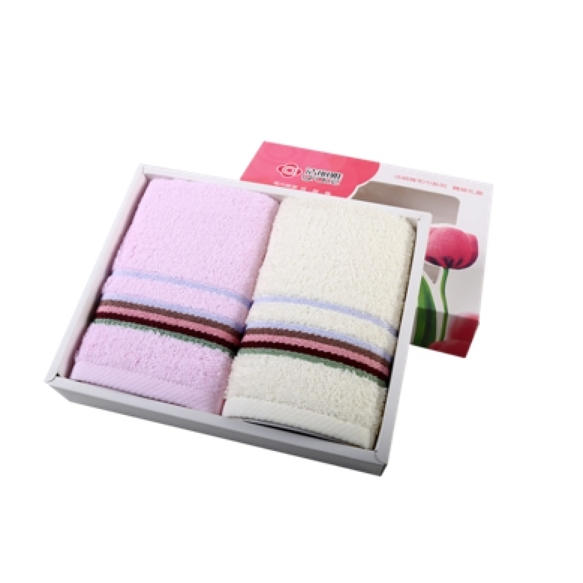 洁丽雅 郁金香礼盒两条装 素色缎档毛巾 6638*2 70*34cm