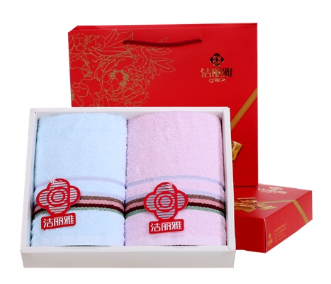 洁丽雅商务、喜庆礼盒两条装素色缎档毛巾 6638*2 70*34cm (下单备注礼盒款式)