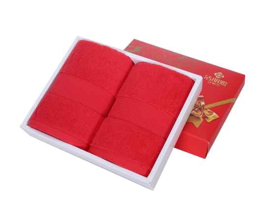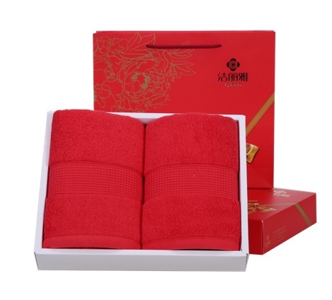 洁丽雅 纯棉喜庆礼盒双条装强吸水舒适面巾 6723 76*35cm