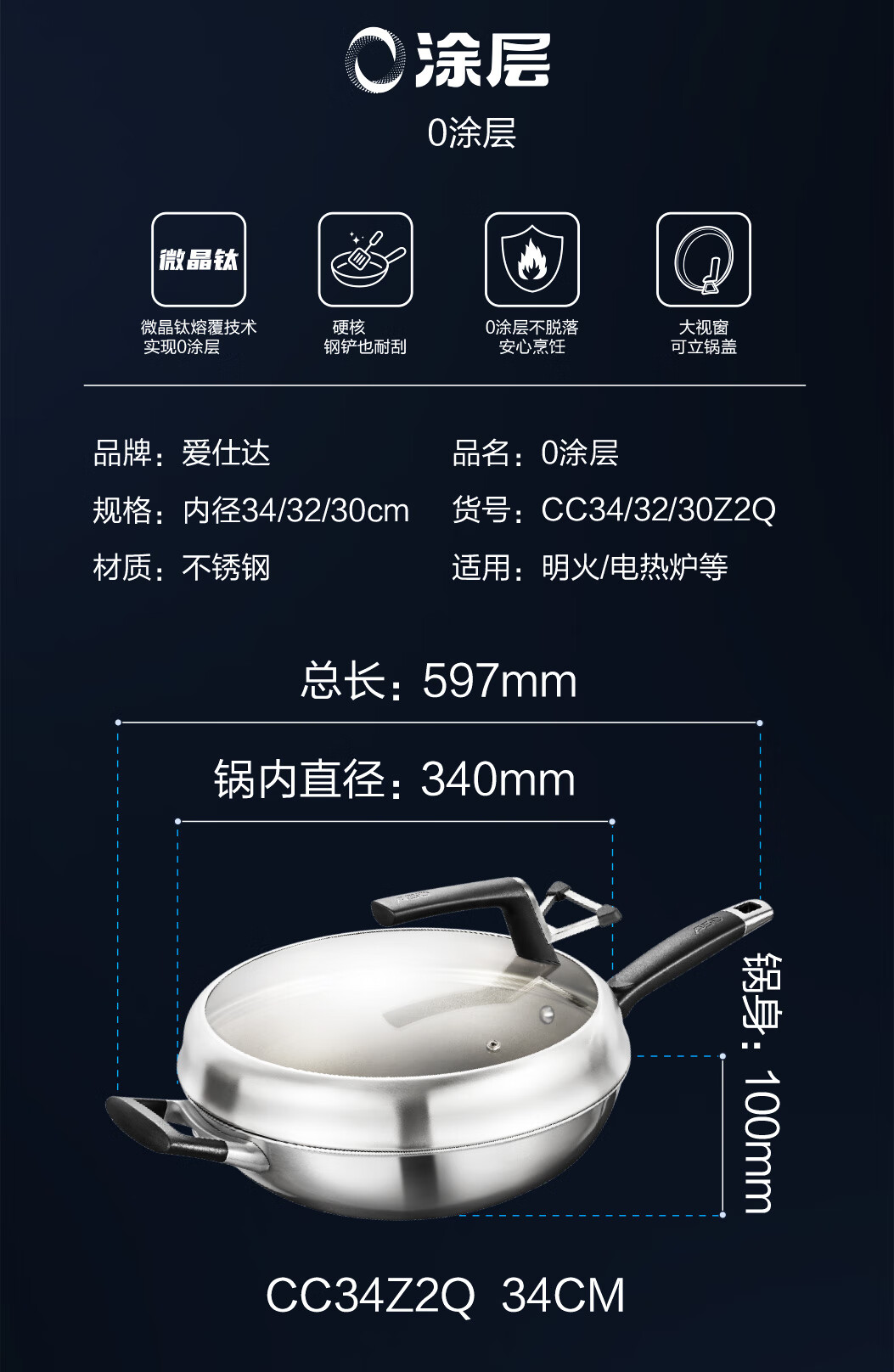 商品名称:爱仕达(ASD)0涂层▪能不粘炒锅 CC32Z2Q 32cm