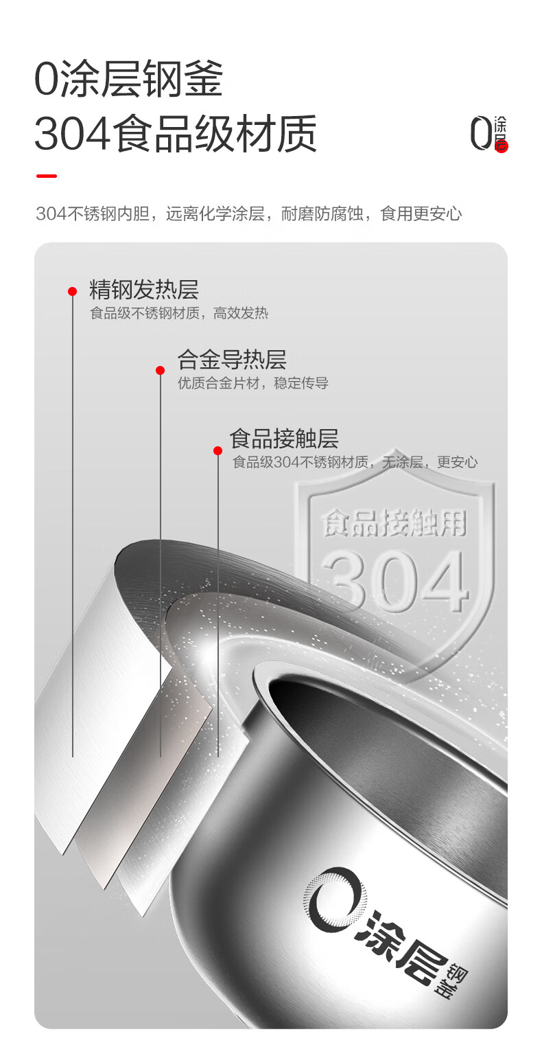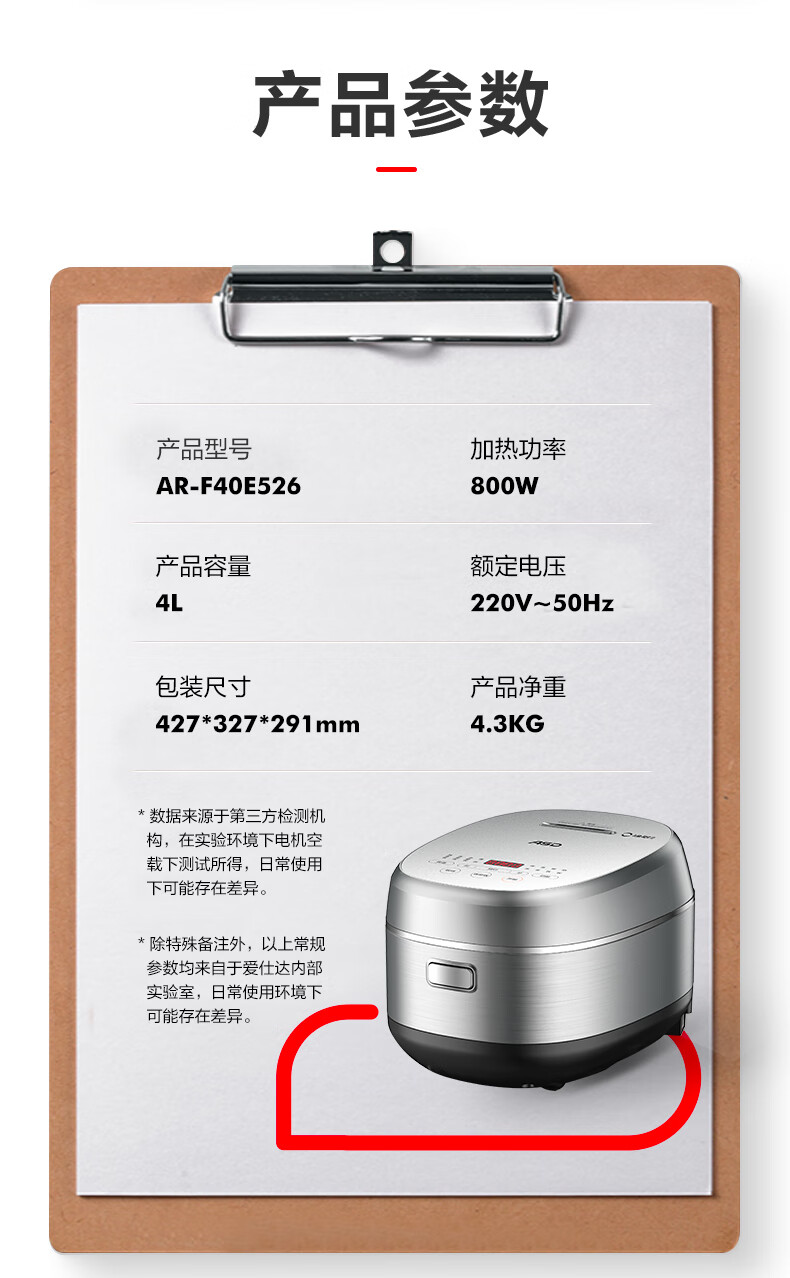 商品名称:爱仕达(ASD)0涂层系列电饭煲 AR-F50E526 5L 800W