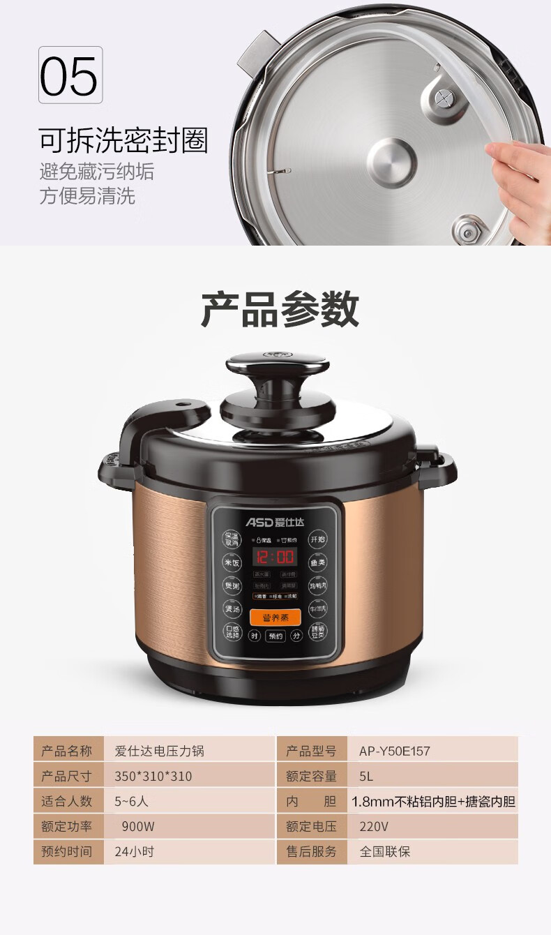 商品名称:爱仕达 快煮系列电压力锅 AP-Y50E157 5L/900W