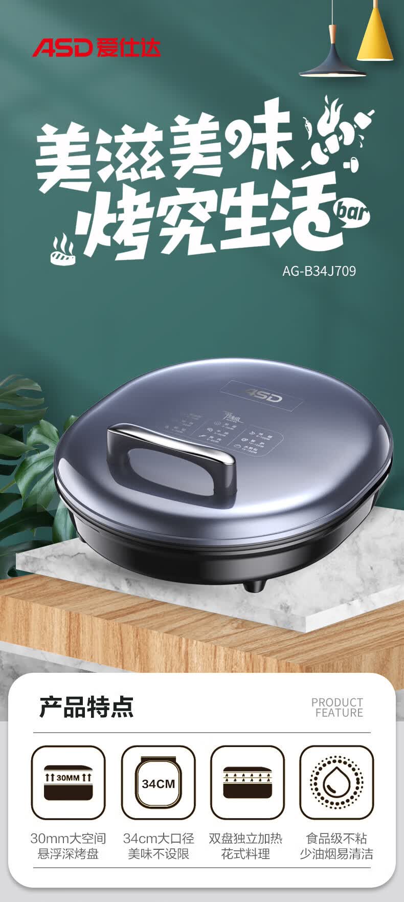 爱仕达(ASD)智烤系列电饼铛 AG-B34J709 34cm/1500W