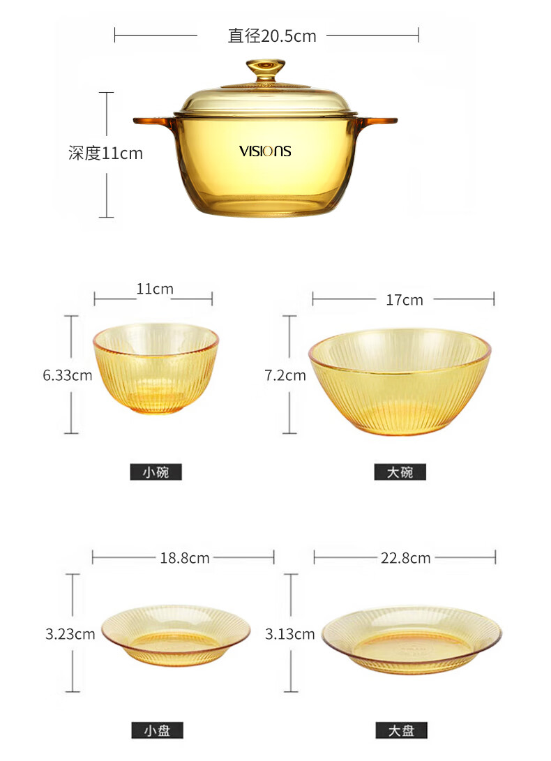 康宁 VISIONS1.25L晶彩锅+SN晶尊餐具豪华5件套 VS125AMR5ZX/KZCL