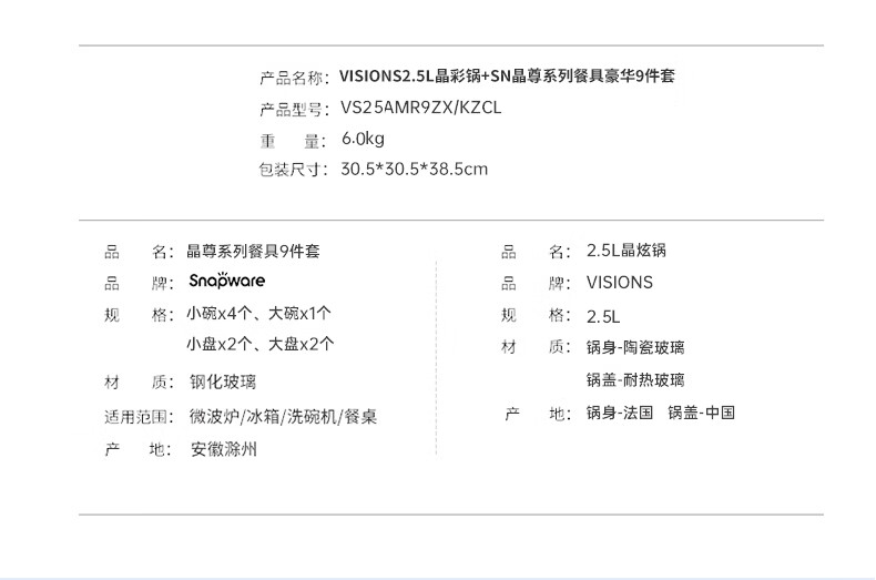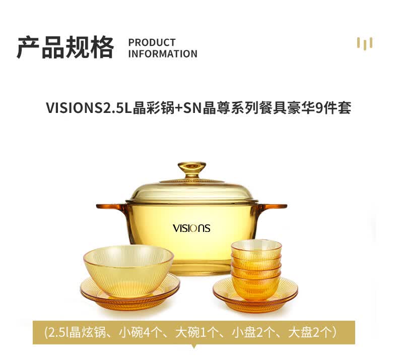 商品名称:康宁 VISIONS1.25L晶彩锅+SN晶尊餐具豪华5件套 VS125AMR5ZX/KZCL