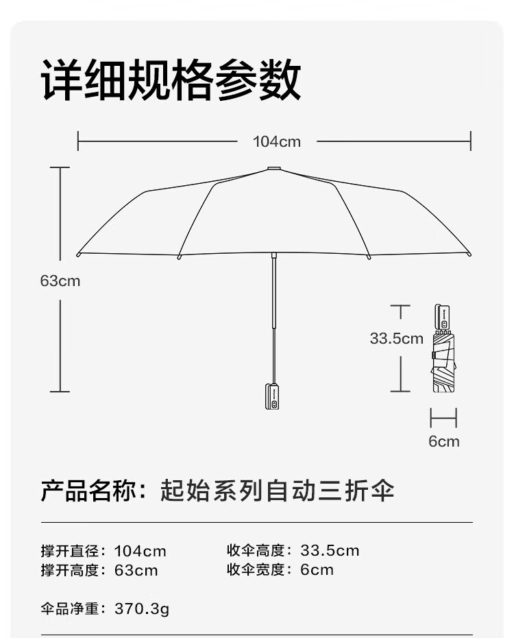尺寸 :撑开直径:104cm、收伞宽度:6cm