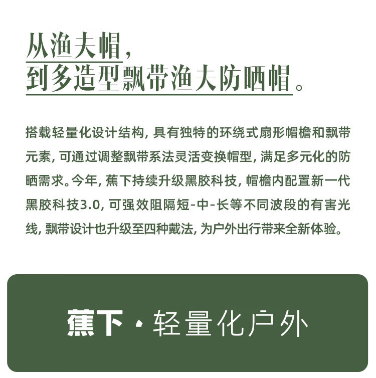商品名称:蕉下(beneunder)穹顶系列间末防晒渔夫帽