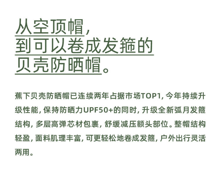 商品名称:蕉下(beneunder)纭际系列贝壳倍护防晒空顶帽