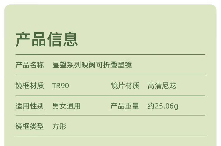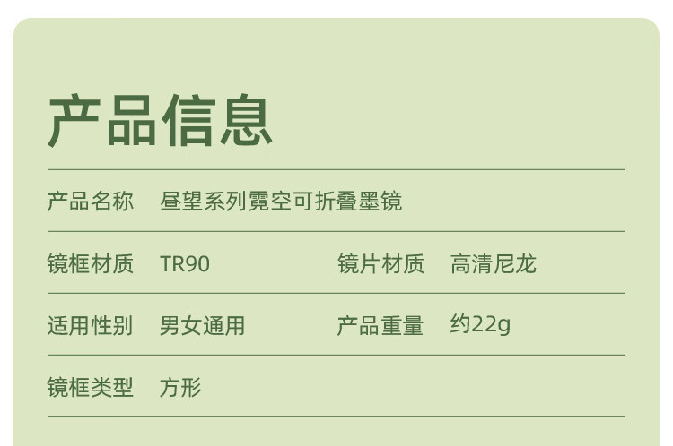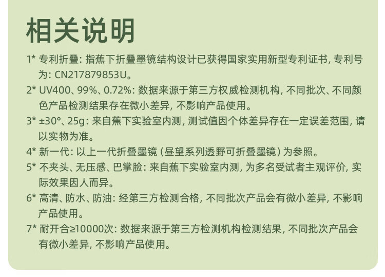 商品名称:蕉下(beneunder)昼望系列透野可折叠墨镜