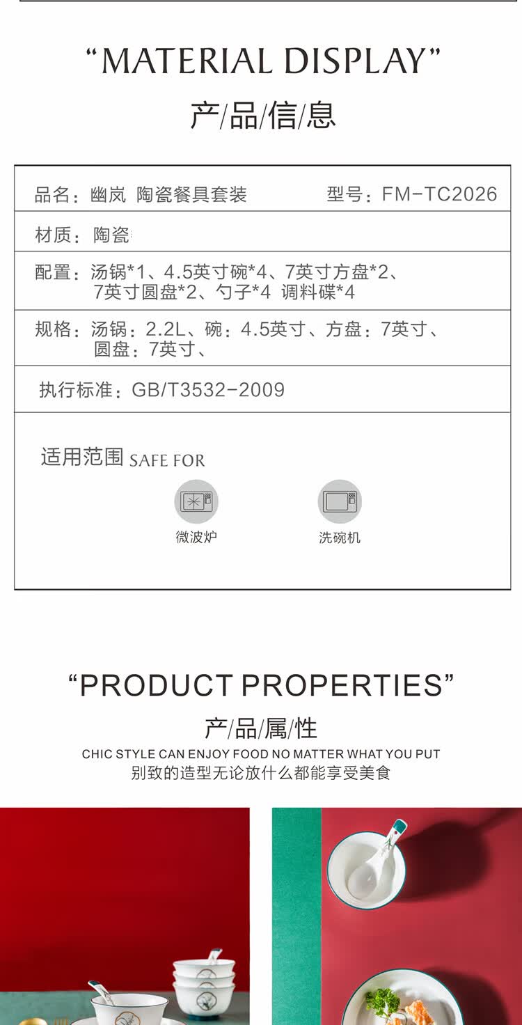 商品名称:菲米生活(PHMI)幽岚陶瓷餐具套装 FM-TC2026