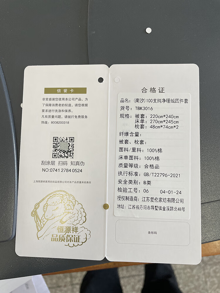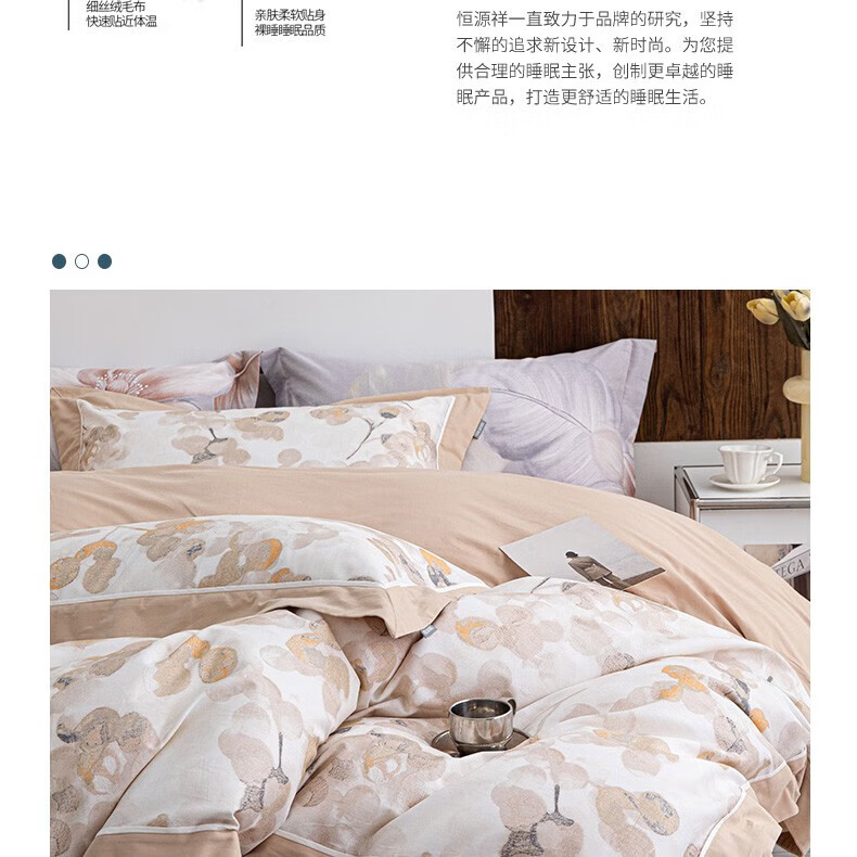 商品名称:恒源祥 南汐100支纯净暖绒纯净暖绒四件套 TBK3016 220*240cm