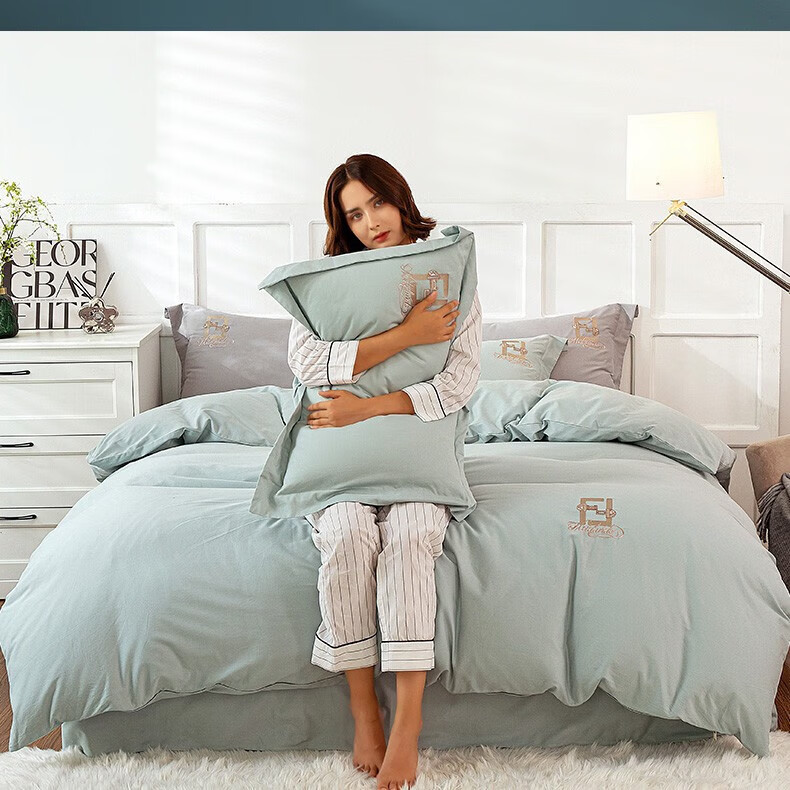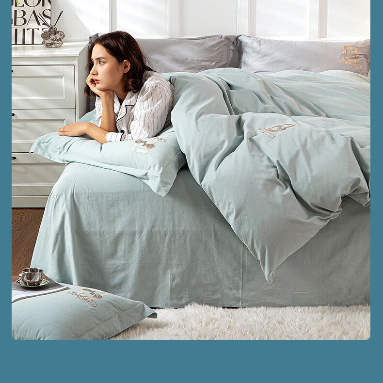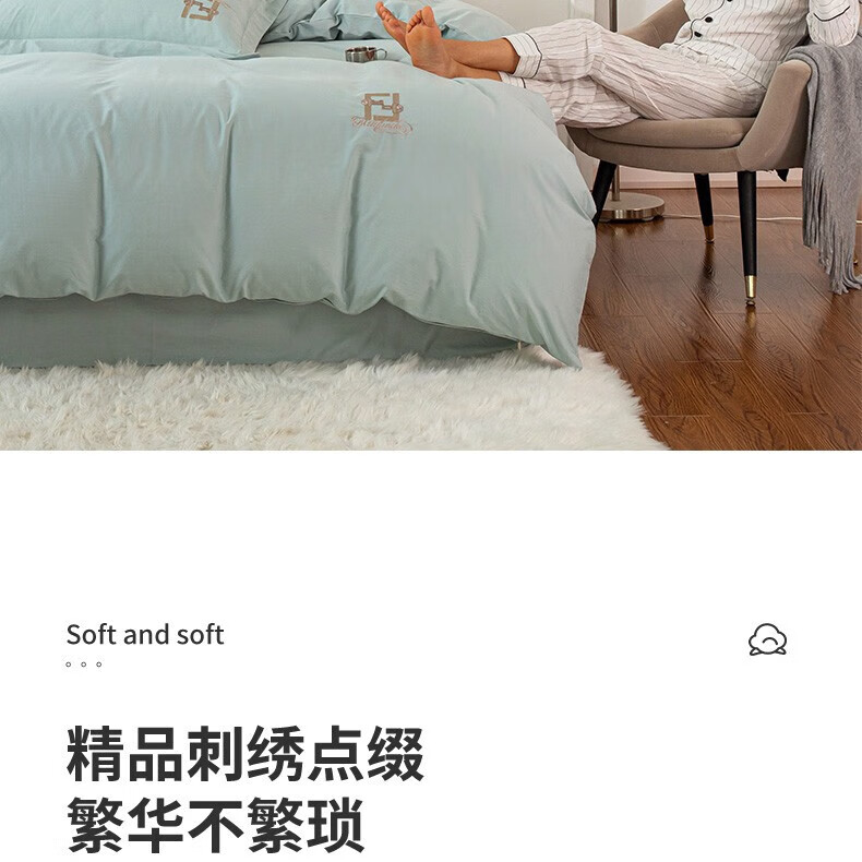 恒源祥 绣花长绒棉四件套(星兰) TBK3019 被套200*230cm