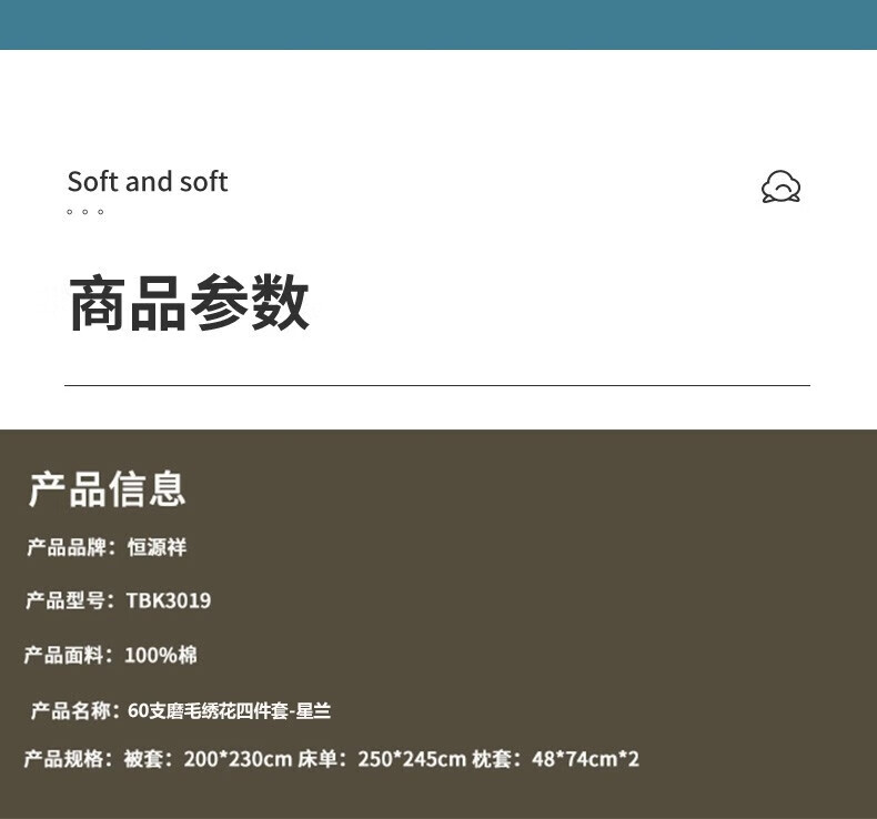 商品名称:恒源祥 绣花长绒棉四件套(星兰) TBK3019 被套200*230cm