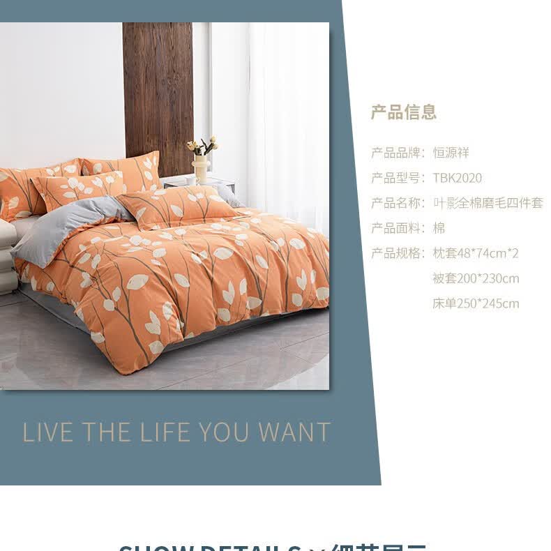 商品名称:恒源祥 叶影磨毛四件套 TBK2020 被套200*230cm