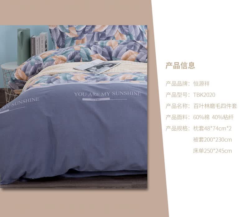 商品名称:恒源祥 百叶林磨毛四件套 TBK2020 被套200*230cm