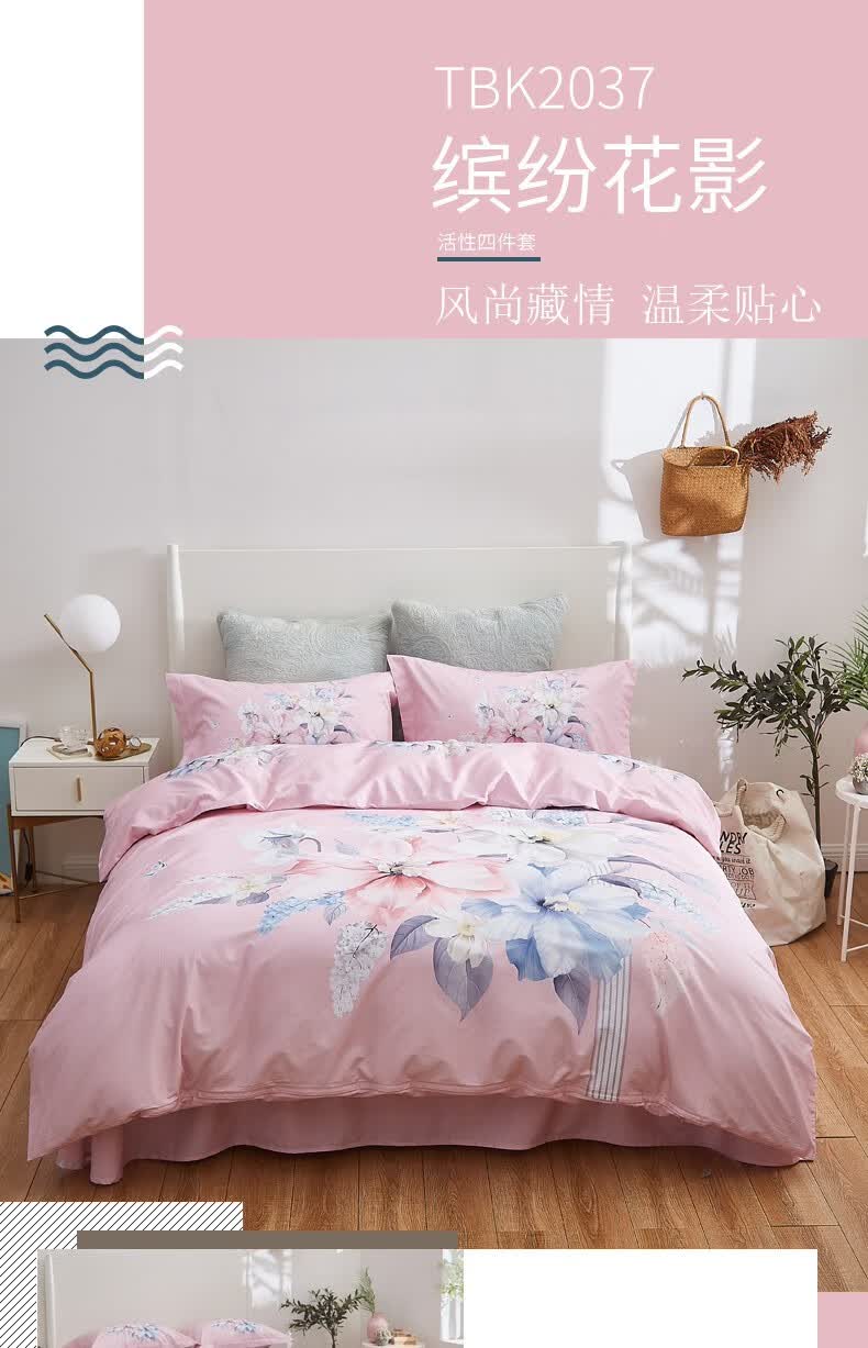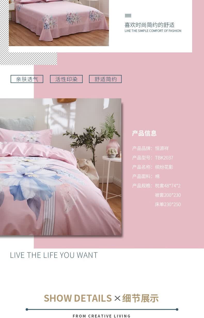 商品名称:恒源祥 缤纷花影全棉活性四件套 TBK2037 被套200*230cm