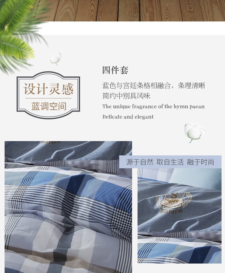 恒源祥 蓝调空间全棉四件套 TBK2018 被套200*230cm