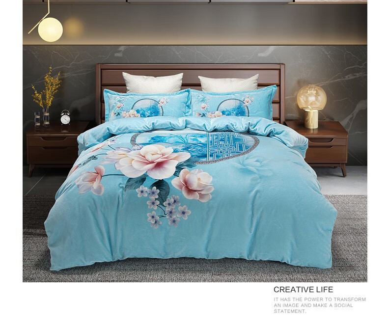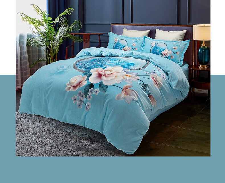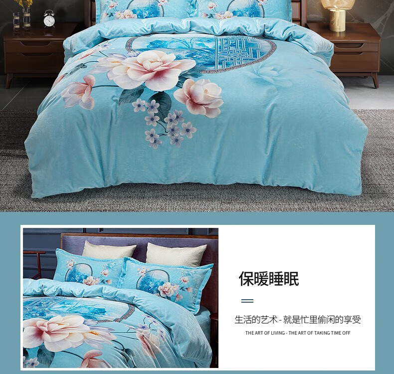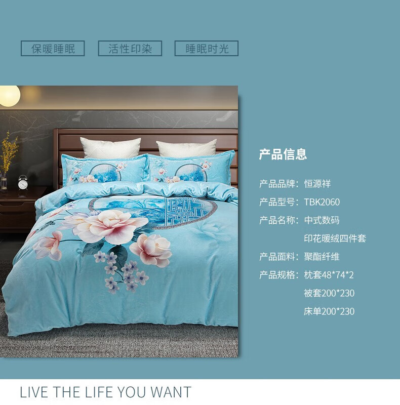 商品名称:恒源祥 中式数码印花暖绒四件套 TBK20609 被套200*230cm