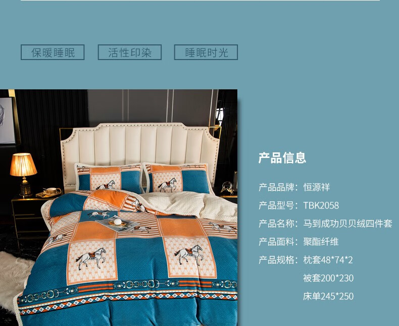 商品名称:恒源祥 马到成功贝贝绒四件套(定制款)TBK2058 被套200*230cm