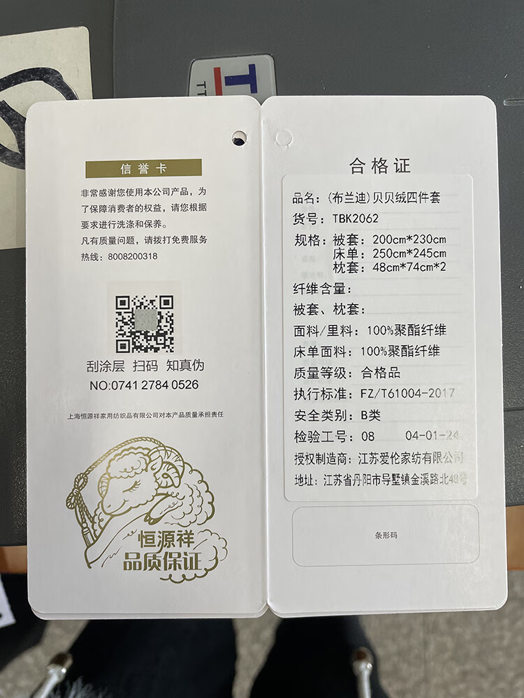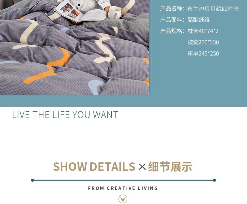 商品名称:恒源祥 布兰迪贝贝绒四件套 TBK2058 被套200*230cm