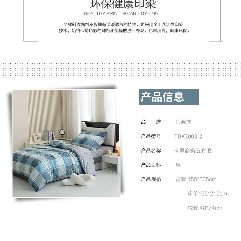 恒源祥 卡里商务五件套 TBK3003-2 被套 155*205cm
